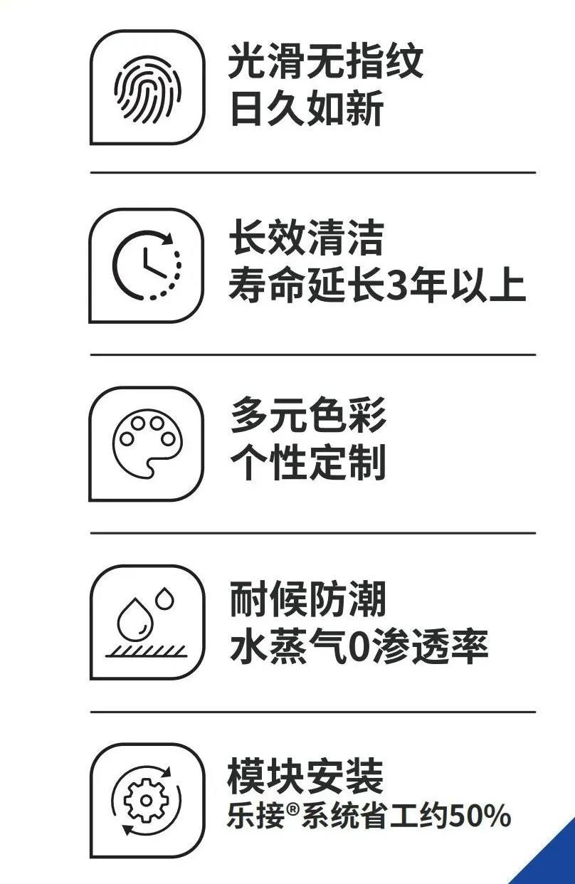 抗指紋系列鋁復合板表面具有防水防油防指紋附著,使表面光滑等功能的特殊涂料,相比于普通鋁復合板,表面更不易污染,可長效保持板面清潔,降低清潔頻次,延長使用壽命3年以上,具有