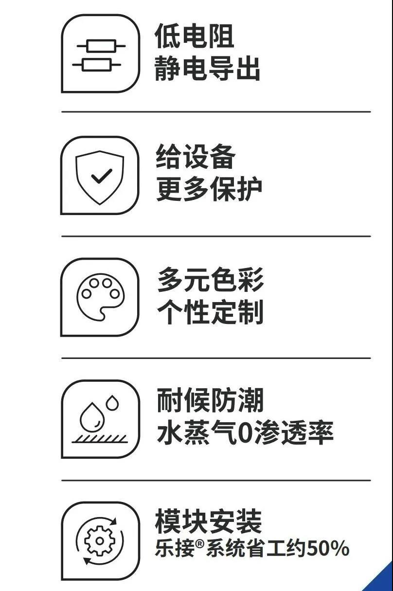 抗靜電系列鋁復合板表面具有能有效將靜電導出的功能涂料,可避免靜電堆積產(chǎn)生放電,破壞設(shè)備,相比于普通鋁復合板能給設(shè)備更好的保護,使設(shè)備完好率提升,具有