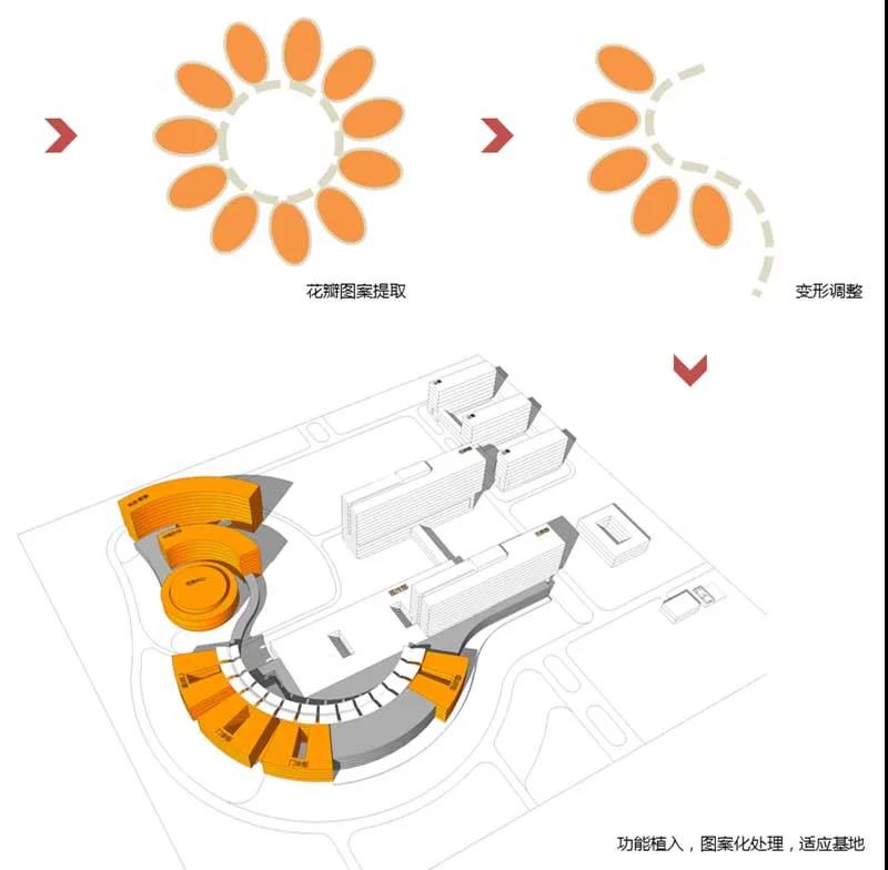 山西省兒童醫院新院區項目在方案設計方面力求展現對患兒視覺感知的關懷,借用太原市市花——菊花的意向來表達對城市的致意,并呼應了兒童天性活潑與率真的特征。整體方案在場地中的構圖充分展現出活潑性、靈活性與恰當性,同時又充分考慮到了醫療功能的合理安排與工藝流線的緊湊性。