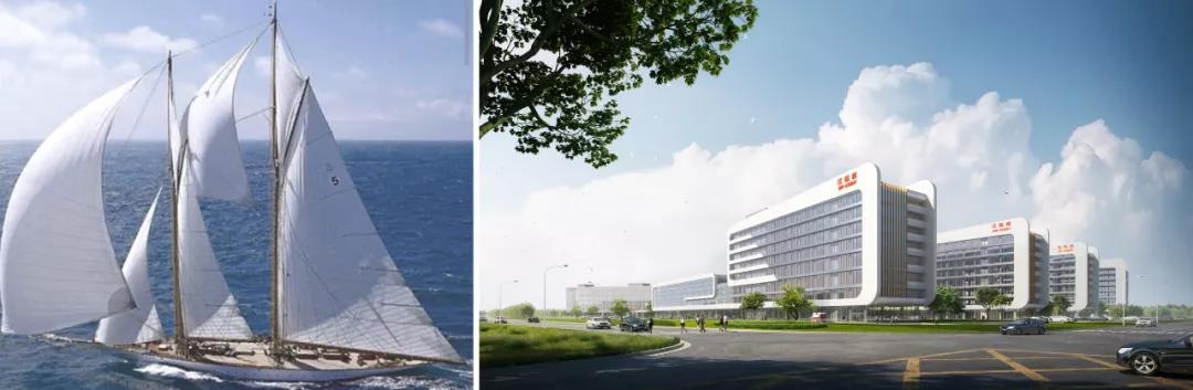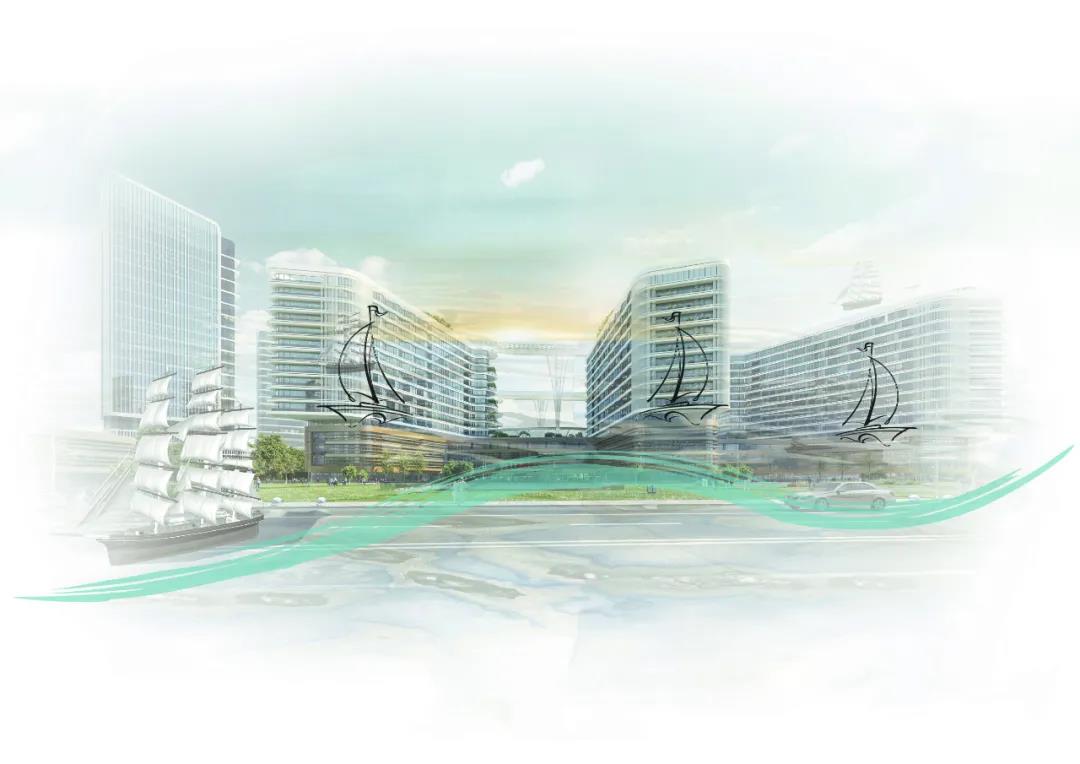 紹興已有2500多年建城史,是著名的水鄉,素有“文物之邦、魚米之鄉”之稱。紹興院區基地周邊環繞著景觀水系,以水為源泉,提出“療愈港灣,揚帆起航”的理念。舒展的??浦行木拖褚凰宜彝?坑谒兜纳?,把紹興的歷史形象延展成現代醫療的療愈港灣,形成歷史與現代的融合。